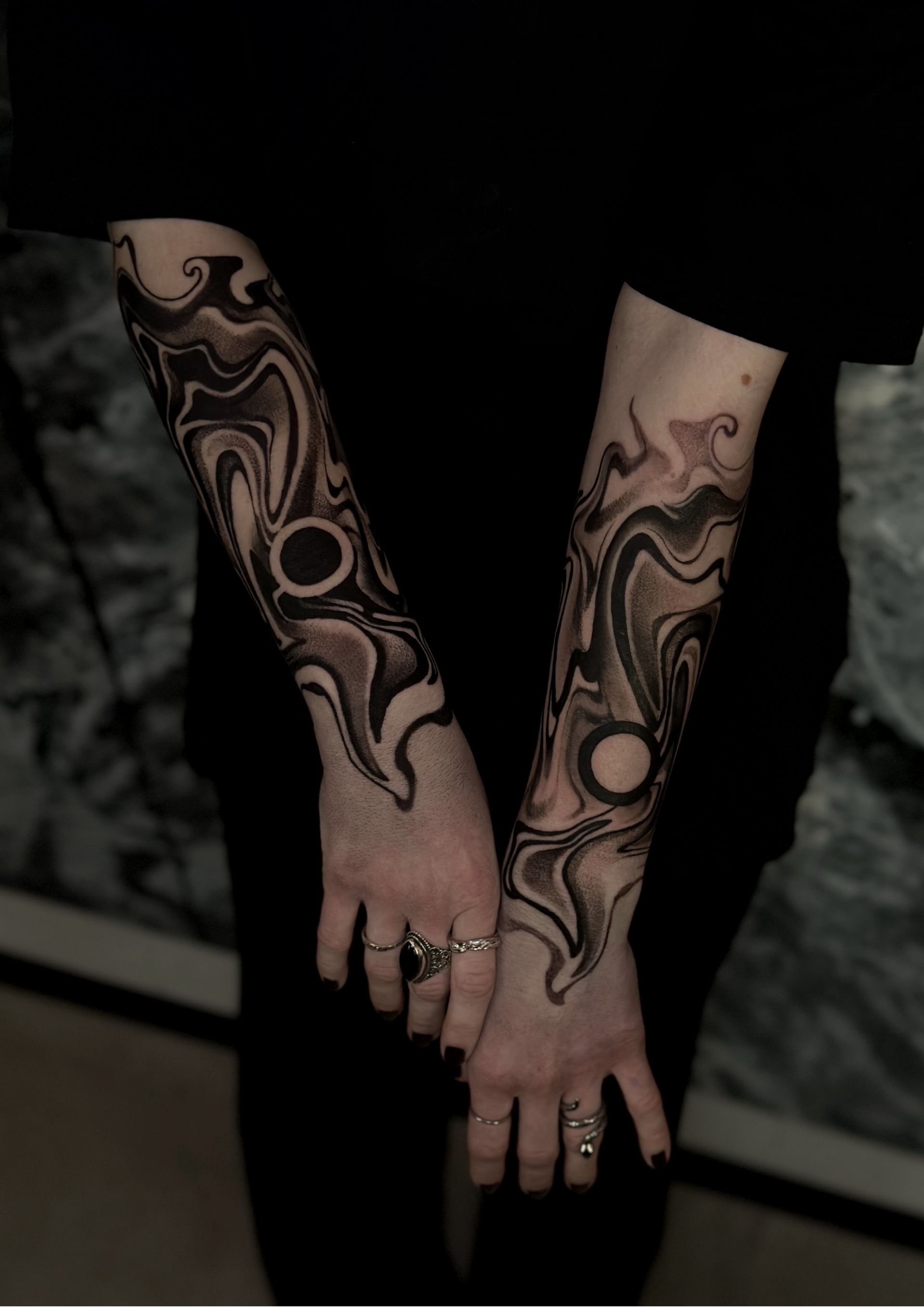 Meine Stilrichtung bewegt sich zwischen Abstraktion, Liquid und Ornamental, wobei die Ästhetik stets im Zentrum liegt - nicht als blosses Schönsein, sondern als Ausdruck von Tiefe, Persönlichkeit und Resonanz. Jeder Körper ist ein Unikat und jede Tätowierung stiller Dialog zwischen innen und aussen.