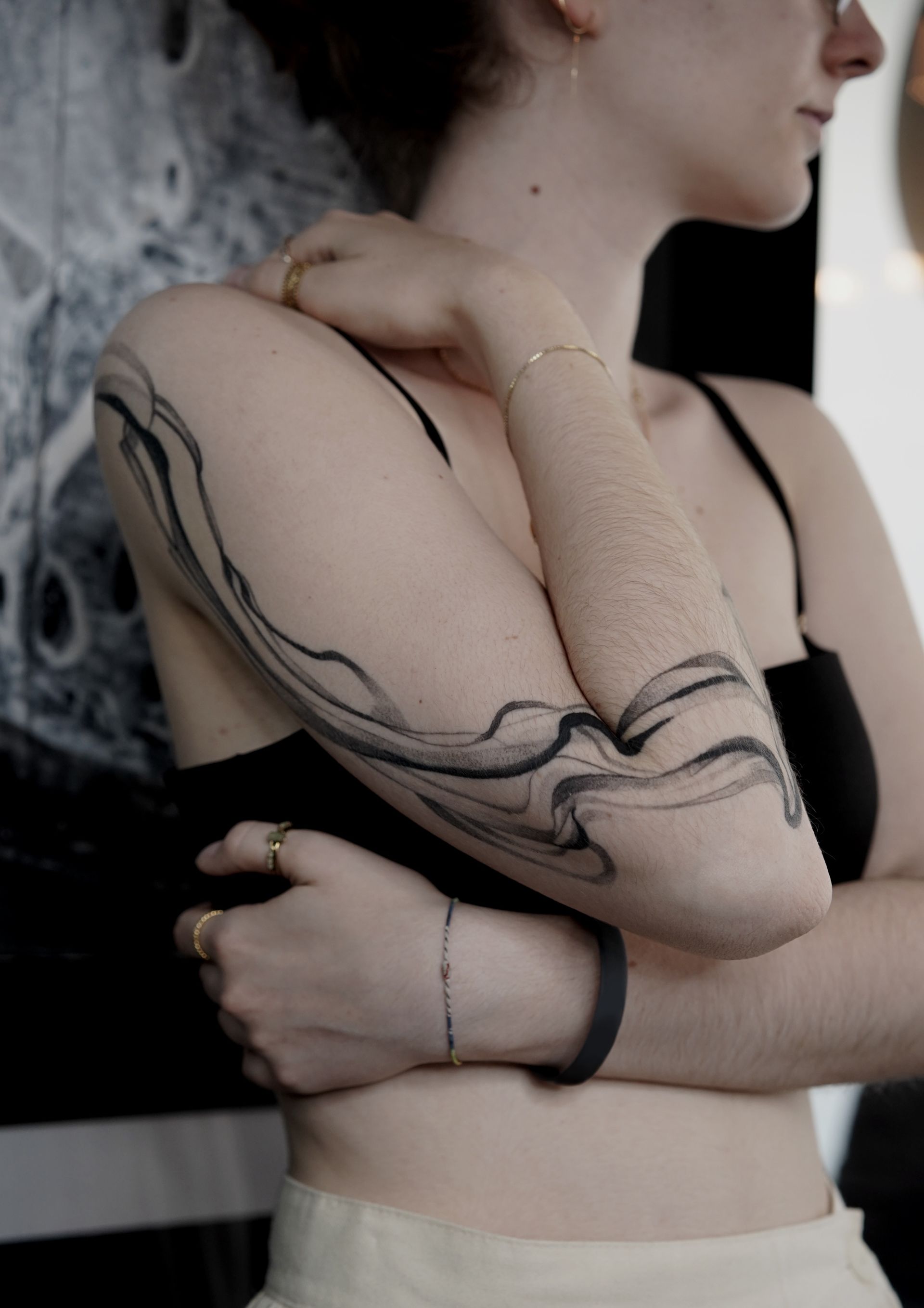 Mein gestalterischer Hintergrund begann mit einer Ausbildung zur Dekorateurin. In der dreidimensionalen und visuellen Kunst habe ich mich schon immer wohlgefühlt, und was einst im Raum begann, findet heute seinen Platz auf der Haut: Mit Linien, Formen und Texturen, die sich mit der Einzigartigkeit jedes Körpers verbinden.
